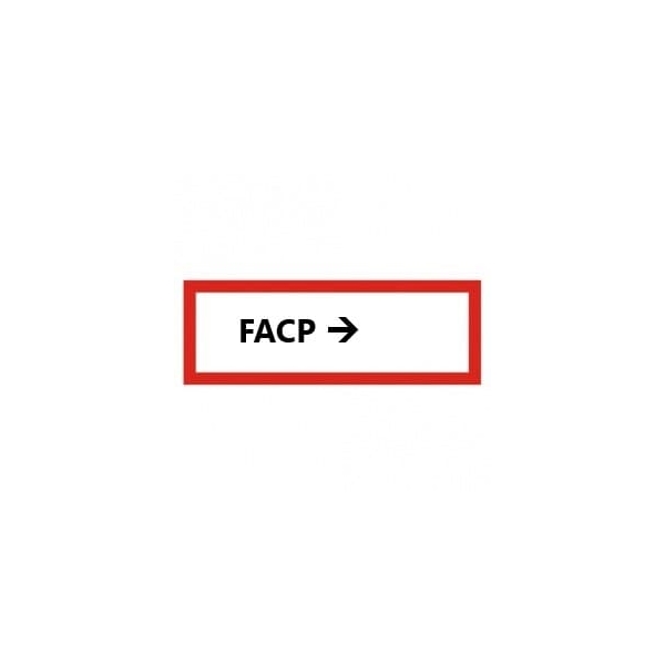 AT-SB46.FN81.074 | Bezpečnostní požární značení, ''FACP'' se šipkou – luminiscenční fólie, 210×74 mm |