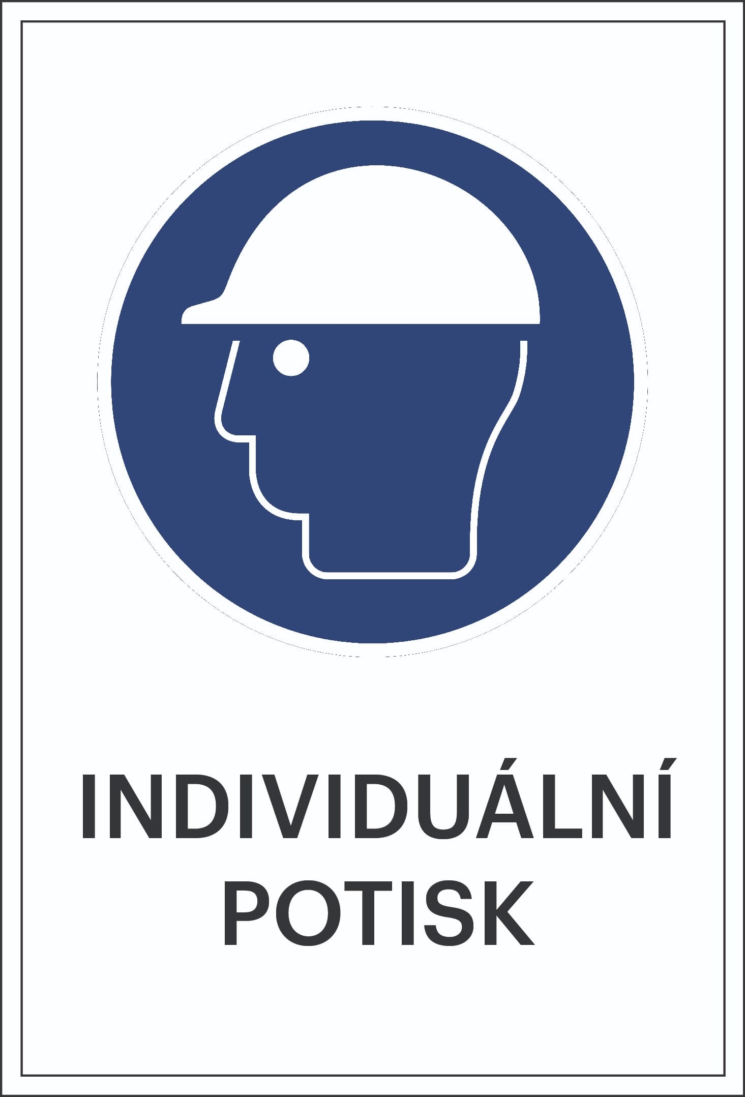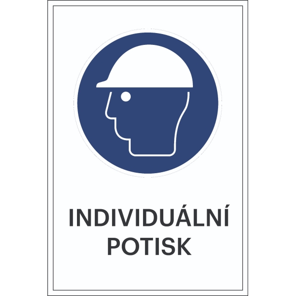AT-SGK03.FAB99.300 | Bezpečnostní příkazové značení, použijte bezpečnostní helmu, s možností individuálního textu – fólie, 200×300 mm |