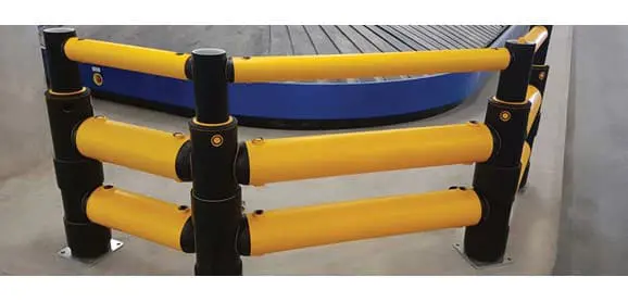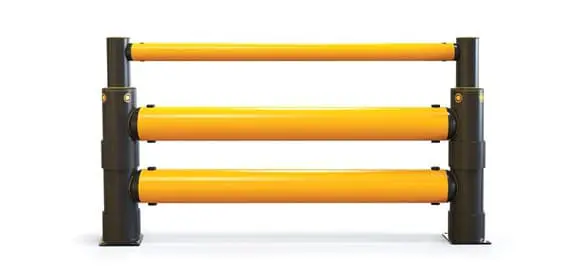 Bezpečnostní zábrana Atlas Double Traffic Barrier + je navržena tak, aby odolala nárazům skladové manipulační techniky v náročných provozech s vysokou frekvencí pohybu.