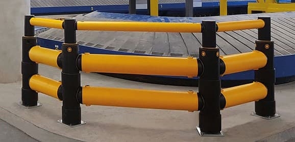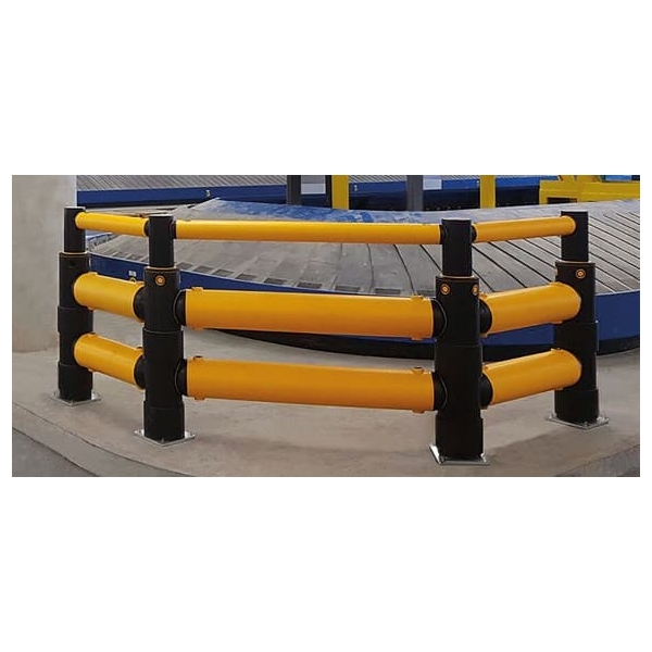 Bezpečnostní zábrana Atlas Double Traffic Barrier + je navržena tak, aby odolala nárazům skladové manipulační techniky v náročných provozech s vysokou frekvencí pohybu.