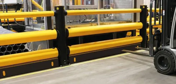 Bezpečnostní zábrana iFlex Double Traffic Barrier + je navržena pro ochranu a oddělení osob od skladové manipulační techniky v náročných provozech s vysokou intenzitou. Žluto-černé provedení zábran napomáhá v orientaci jak řidičům, tak chodcům pro bezpečný pohyb ve firemním areálu.