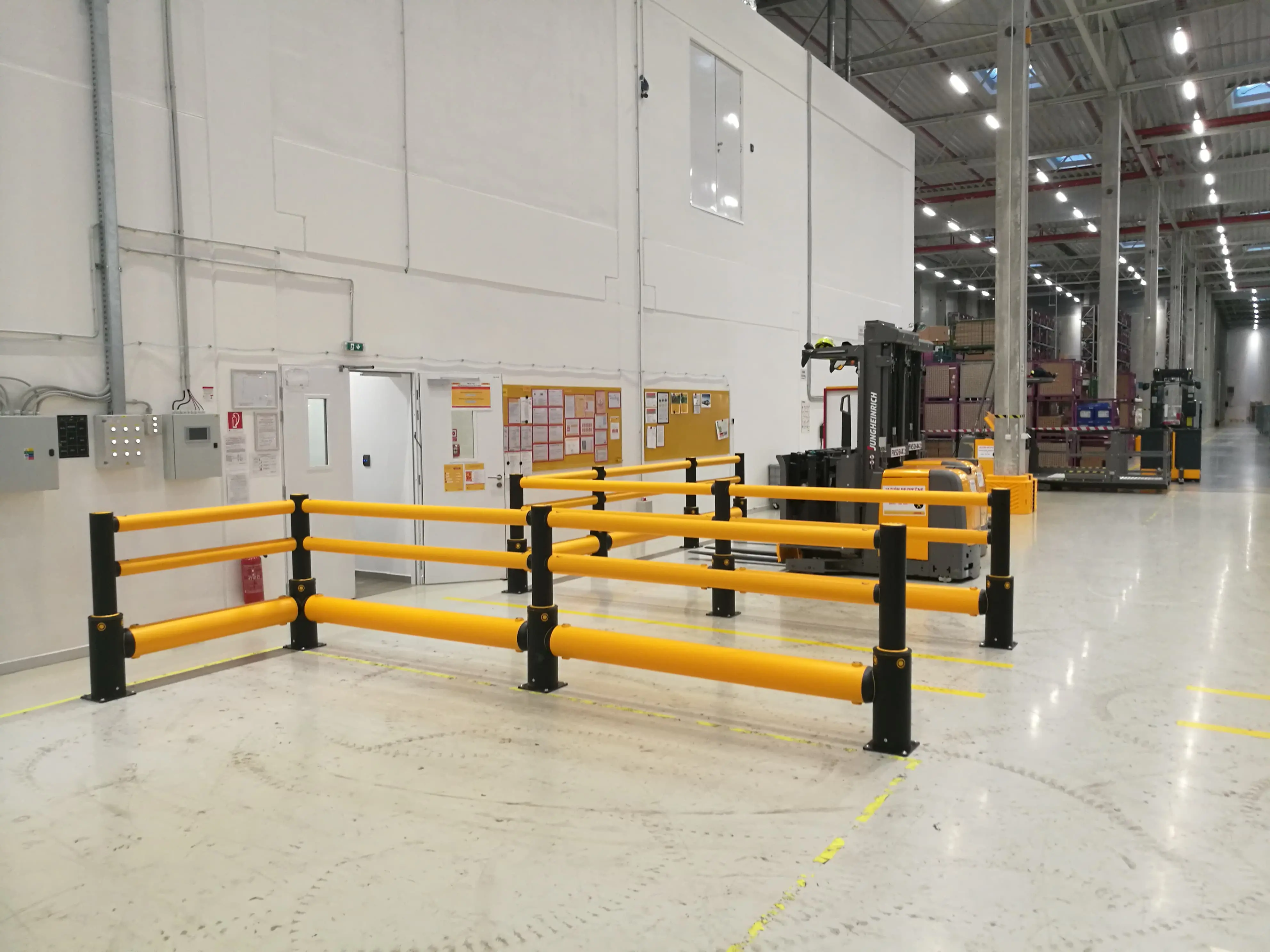 Žluto-černé provedení zábran napomáhá v orientaci jak řidičům, tak chodcům pro bezpečný pohyb ve firemním areálu.