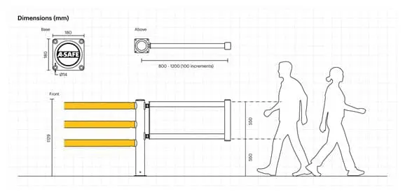 Bezpečnostní branka Swing Gate v krátkém provedení dotváří komplexní řešení pro ochranu osob bezpečnostními zábranami zn. A-SAFE. Využijete ji pro zajištění přechodu o šířce 800 až 1 200 mm.