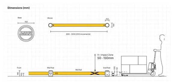 Bezpečnostní zábrana mFlex Single Traffic Barrier Low je určena k ochraně stěn, elektrorozvaděčů, kovových konstrukcí, uskladněného zboží, výrobních linek před nárazy v těsné blízkosti podlahy.