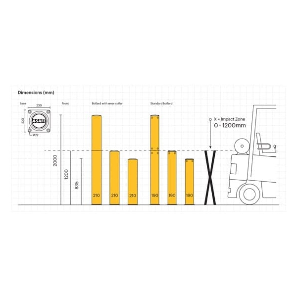 Sloupy Bollard svou výraznou žlutou barvou vizuálně vymezují průjezdy pro řidiče vozidel. Při nárazu dojde k vychýlení konstrukce sloupu, odklonění dopravní techniky a k následnému navrácení sloupu do původního tvaru. V případě potřeby zastavení techniky doporučujeme zábrany typu Traffic.