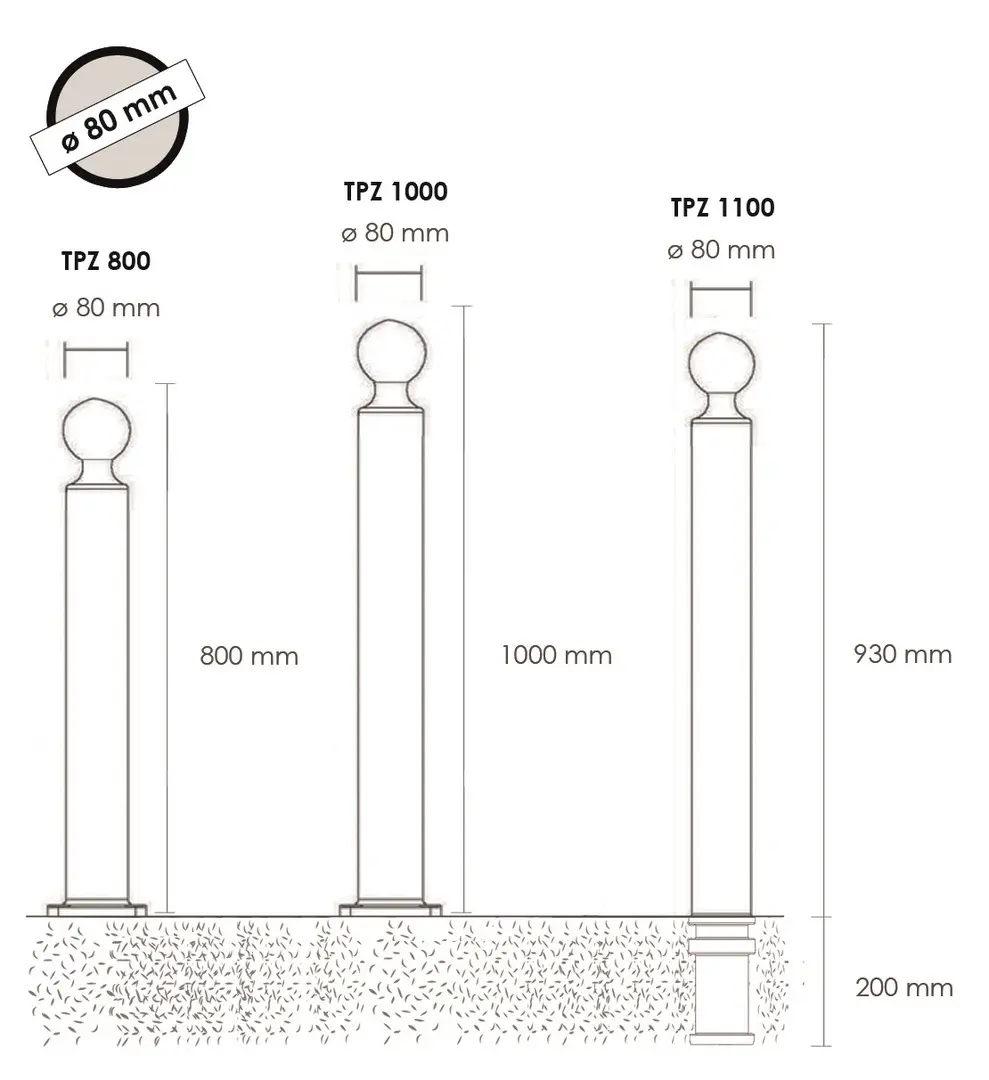 VI-TPZ800RN | Flexibilní sloupek, výška 800 mm, pr. 80 mm, kulatá hlavice – černá |