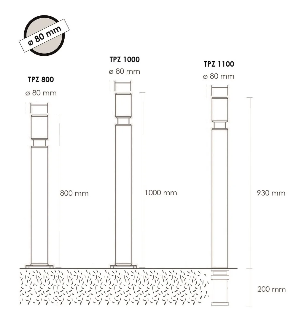 VI-TPZ1100CN | Flexibilní sloupek k zabetonování, výška 1130 (930) mm, pr. 80 mm – černá |