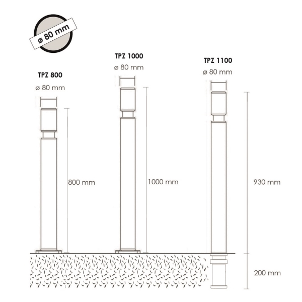 VI-TPZ1500CNB | Flexibilní sloupek k zabetonování, výška 1560 (1310) mm, pr. 80 mm – černá |