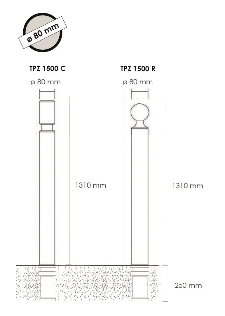 VI-TPZ1500CNB | Flexibilní sloupek k zabetonování, výška 1560 (1310) mm, pr. 80 mm – černá |