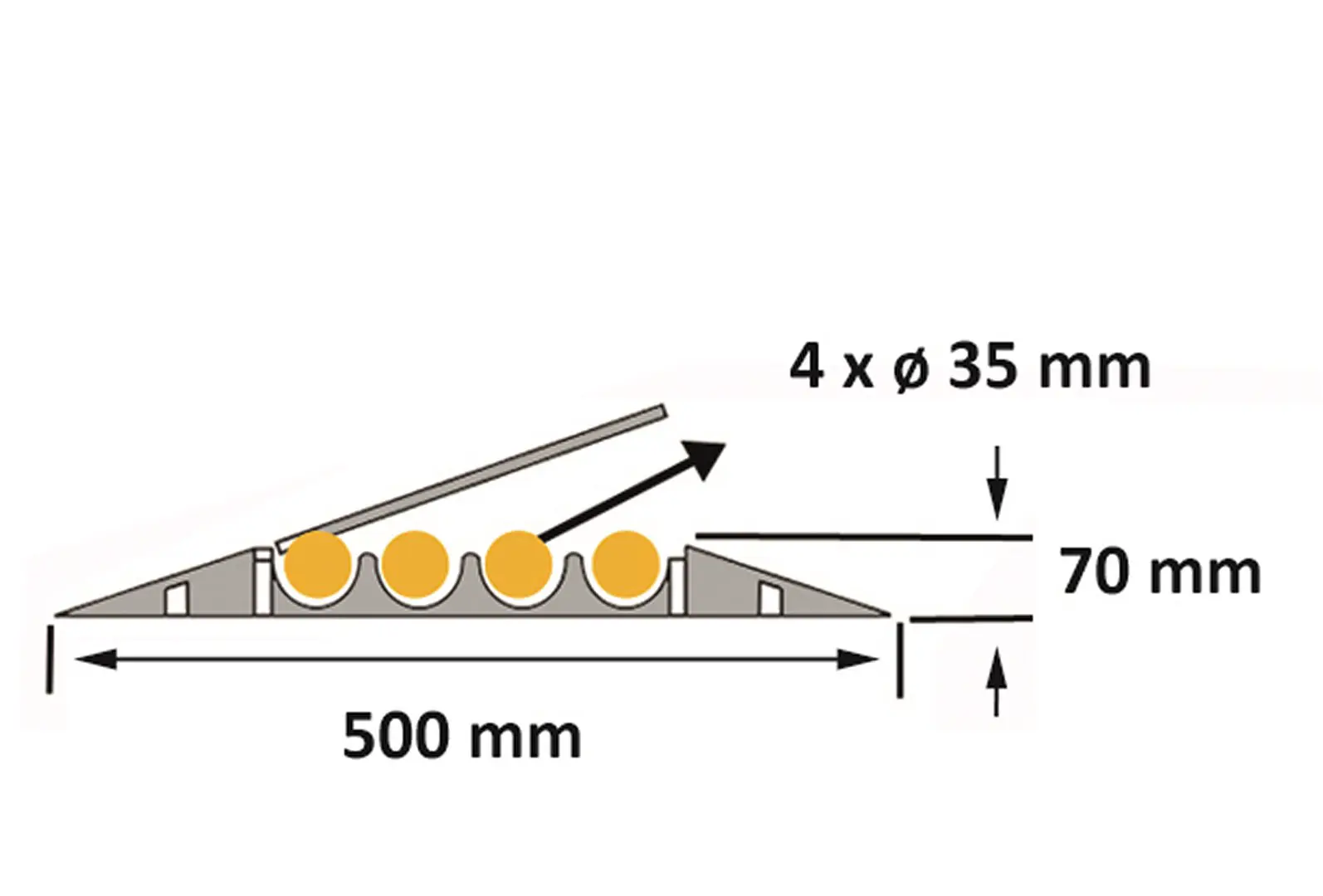 Kabelový přejezd, most – rohový díl pravý 30° účinně chrání před nechtěným zakopnutím a zajišťují bezpečný přejezd těžké techniky.