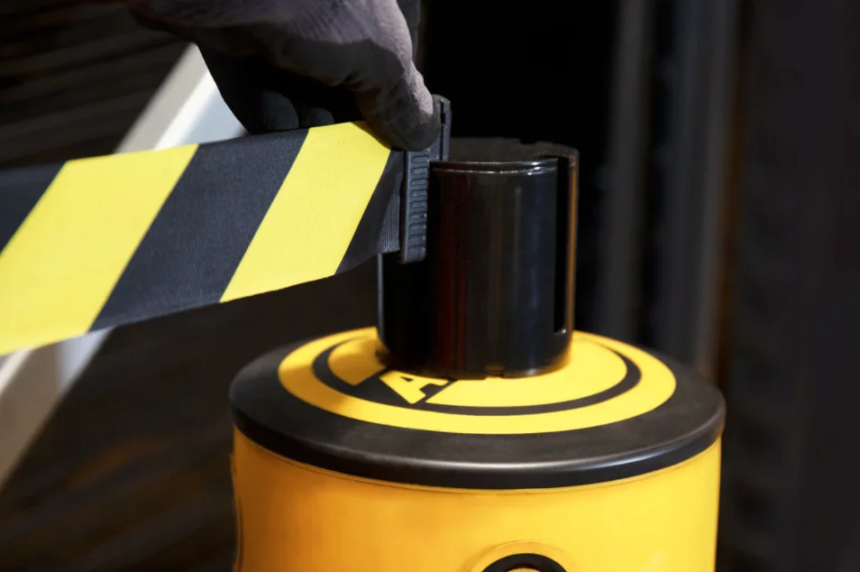 Kazeta se samonavíjecím pásmem zn. A-SAFE je určena pro montáže na sloupky pro dočasné vymezení prostoru nebo zamezení vstupu. Protikus může být nainstalován na jakýkoliv sloupek s průměrem 80 mm. Kazeta s návinem 9 m umožňuje také připojení pásma ze tří stran, čímž lze dosáhnout celkového propojení jednotlivých kazet a dosáhnout tak požadované délky zábrany.