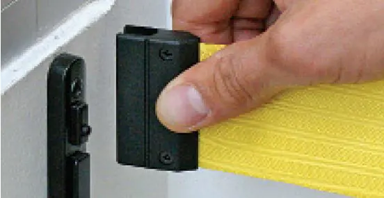 Pro vytažení tohoto typu koncovky ze sloupku nebo nástěnné kazety je nutné nejprve stisknout pojistku úchytu proti nechtěnému vytažení. Tato pojistka s úchytem je na třech stranách každého sloupku zn. Tensabarrier a taky na nástěnném klipu.