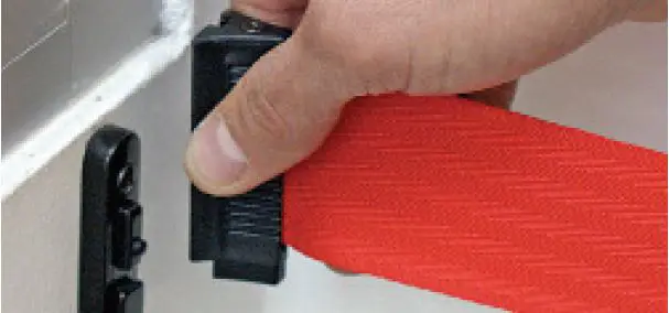 Pro odpojení pásma z úchytu nebo nástěnného klipu není potřebná žádná síla nebo výkon. Úniková koncovka se samovolně odpojí již při lehkém kontaktu s procházející osobou.