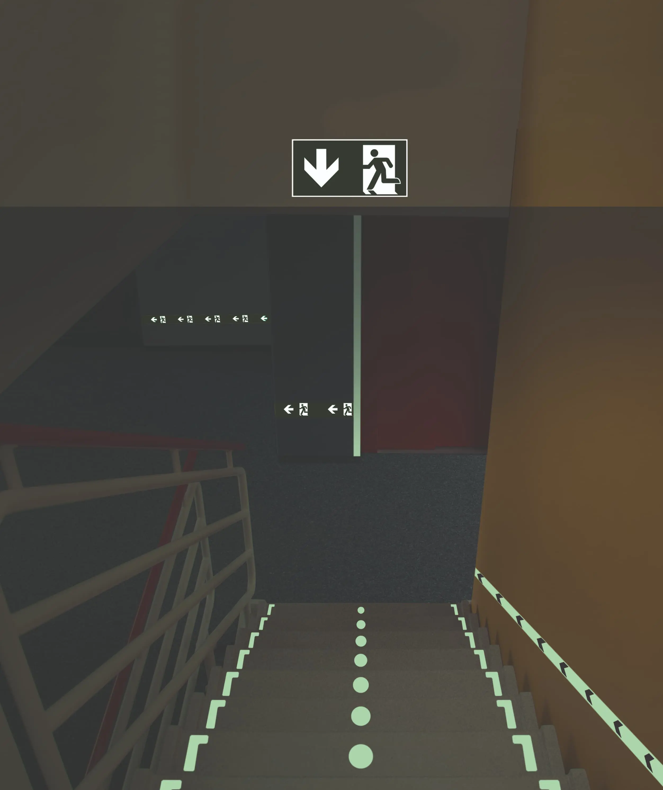 Luminiscenční pásky a značení na zdi a podlahy je ideální volba pro vyznačení únikových východů pro případ nehody spojené s výpadkem elektrické energie.
