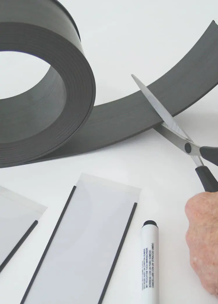 Magnetické lišty se snadno krátí na požadovanou délku. Každý držák je dodáván papírovým štítkem a PVC krycí lištou.