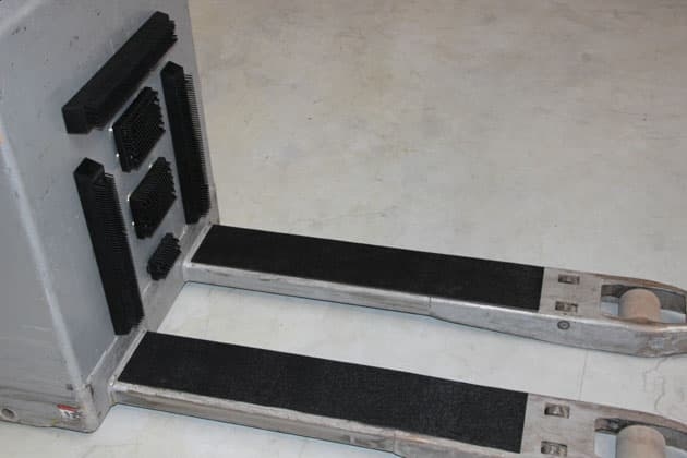 Magnetický protiskluzový kryt na vidlice je vyroben z plastu. Využijete na vidlice paletového vozíku nebo VZV. Zabraňuje sklouzávání nákladu po vidlicích a poškrábání nákladu o holé ocelové vidlice.