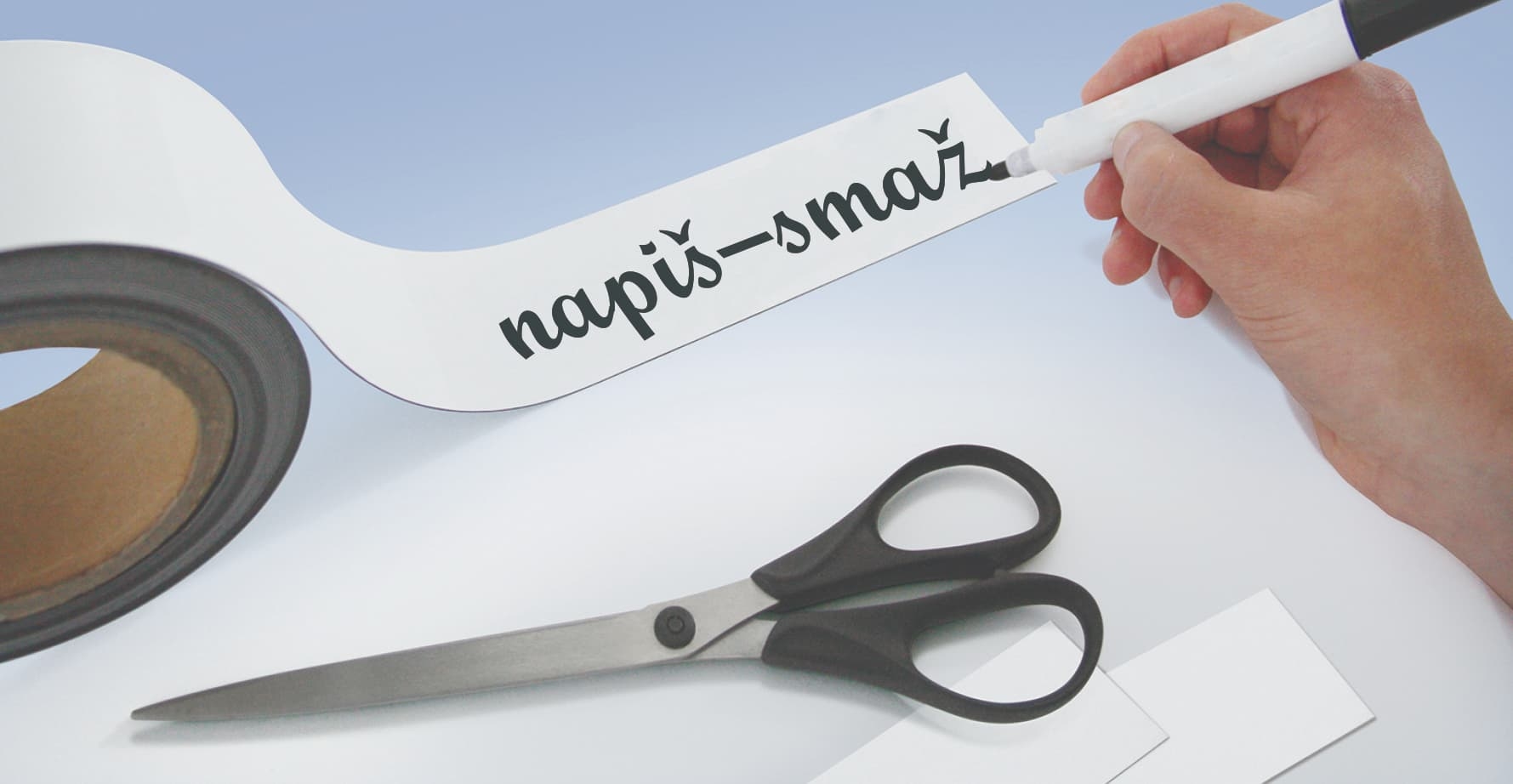 Magnetické přepisovatelné pásky se snadno dělí na požadované délky.