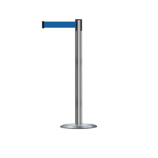 TE-889U-3BBK | Mobilní zahrazovací sloupek Advance s podstavou Universal, kartáčovaná nerez – černé pásmo 2,3 m |