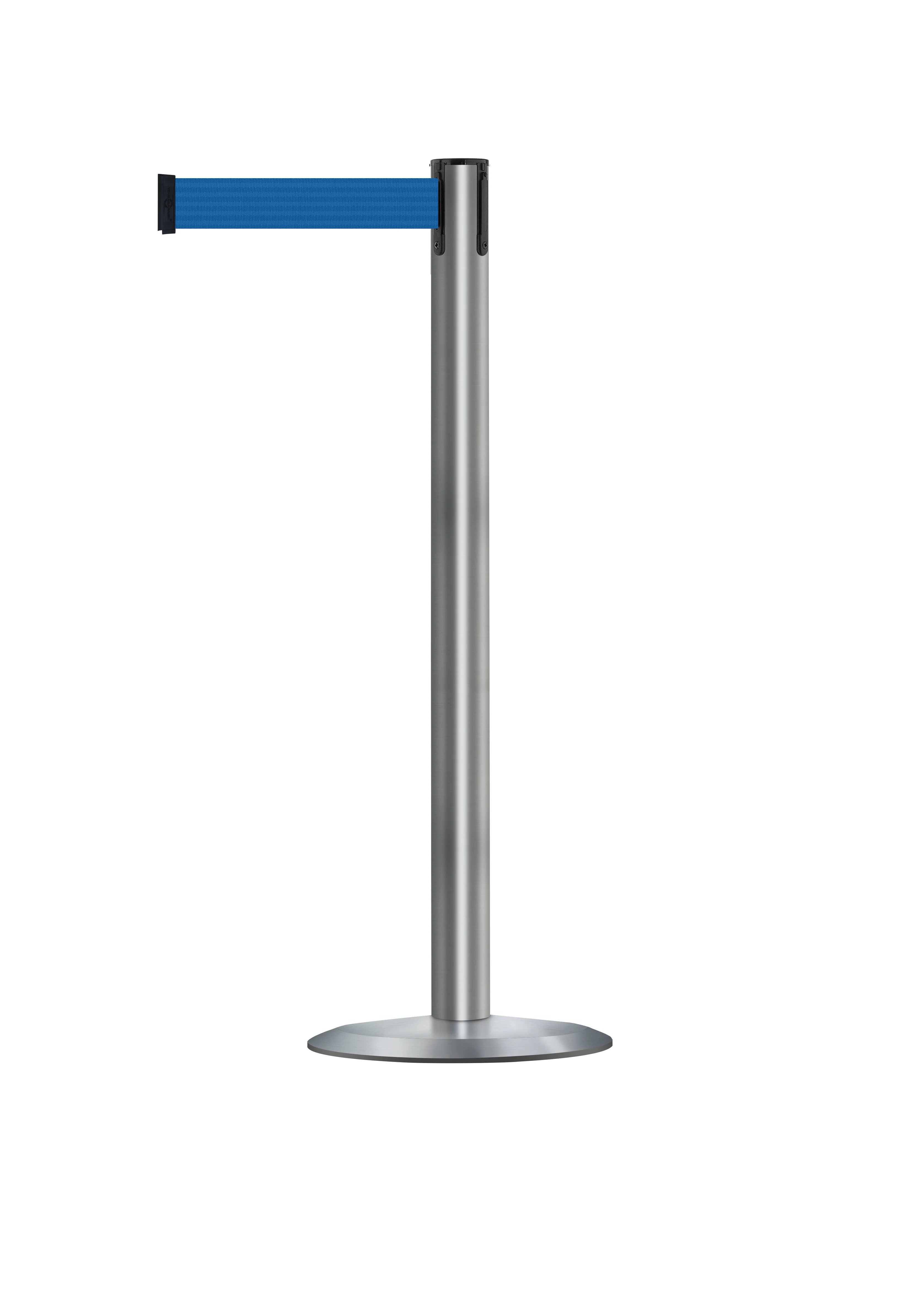 TE-889U-3BBK | Mobilní zahrazovací sloupek Advance s podstavou Universal, kartáčovaná nerez – černé pásmo 2,3 m |