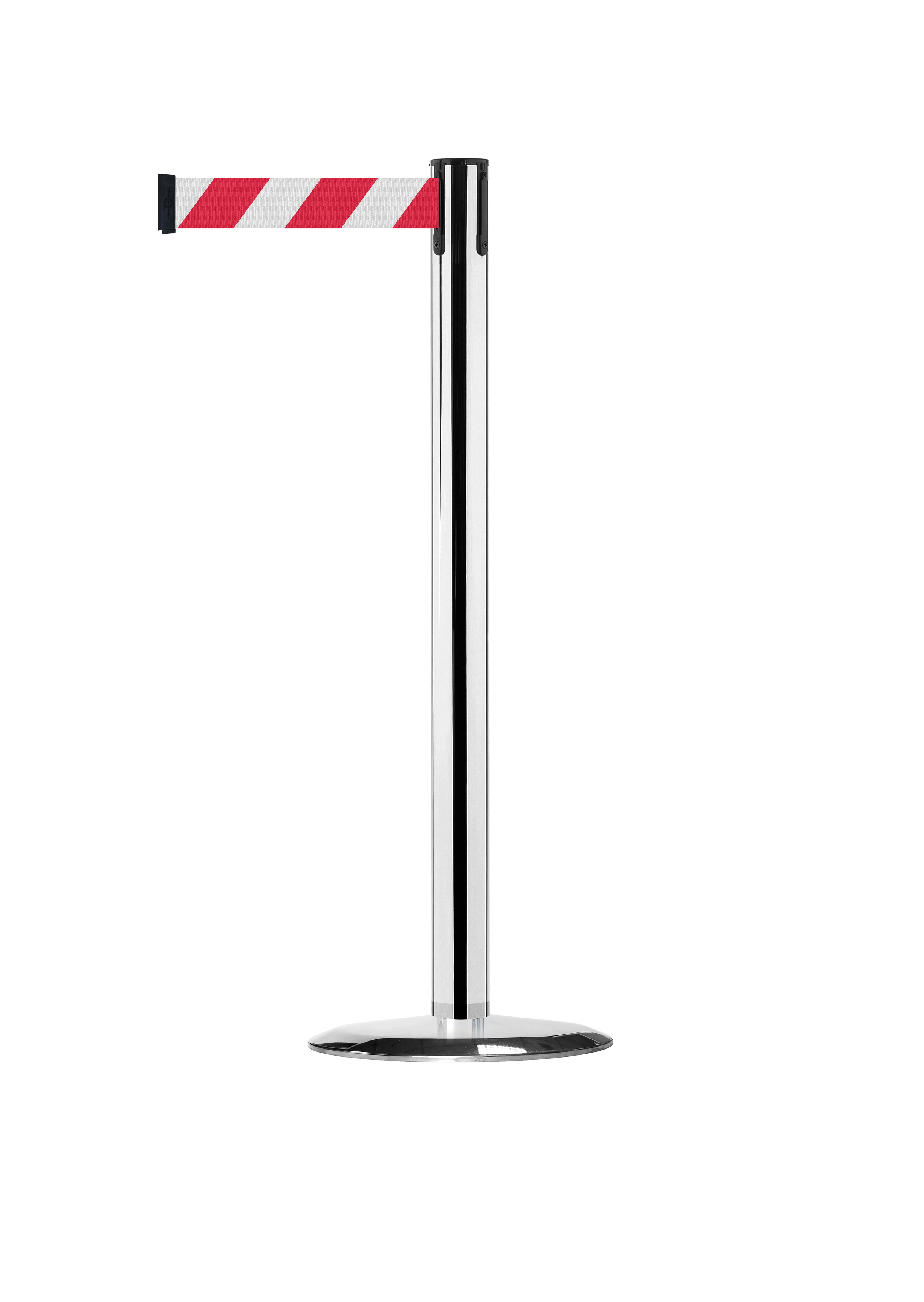 TE-889U-1PBK | Mobilní zahrazovací sloupek Advance s podstavou Universal, leštěný chrom – černé pásmo 2,3 m |