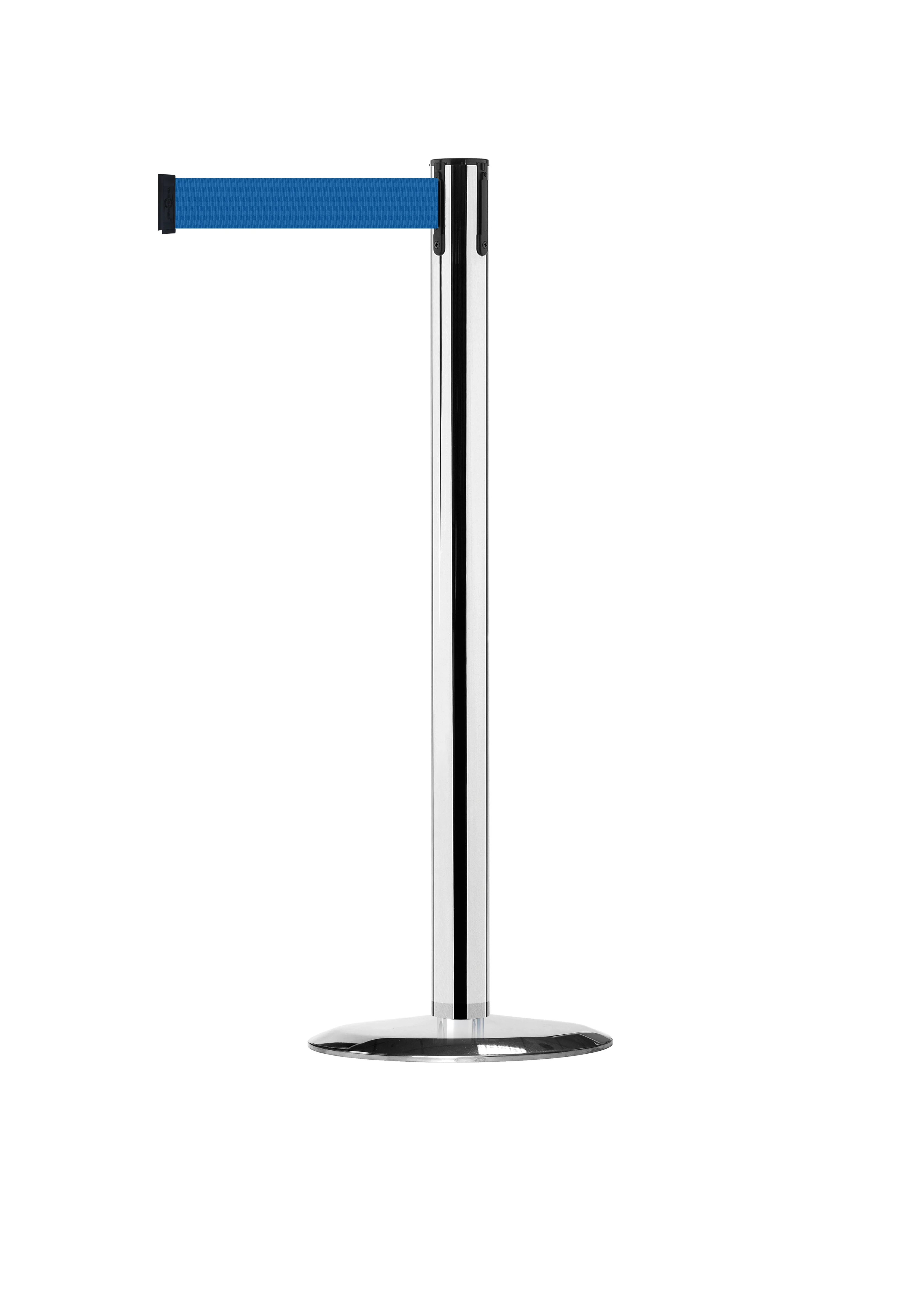 TE-889U-1PBK | Mobilní zahrazovací sloupek Advance s podstavou Universal, leštěný chrom – černé pásmo 2,3 m |