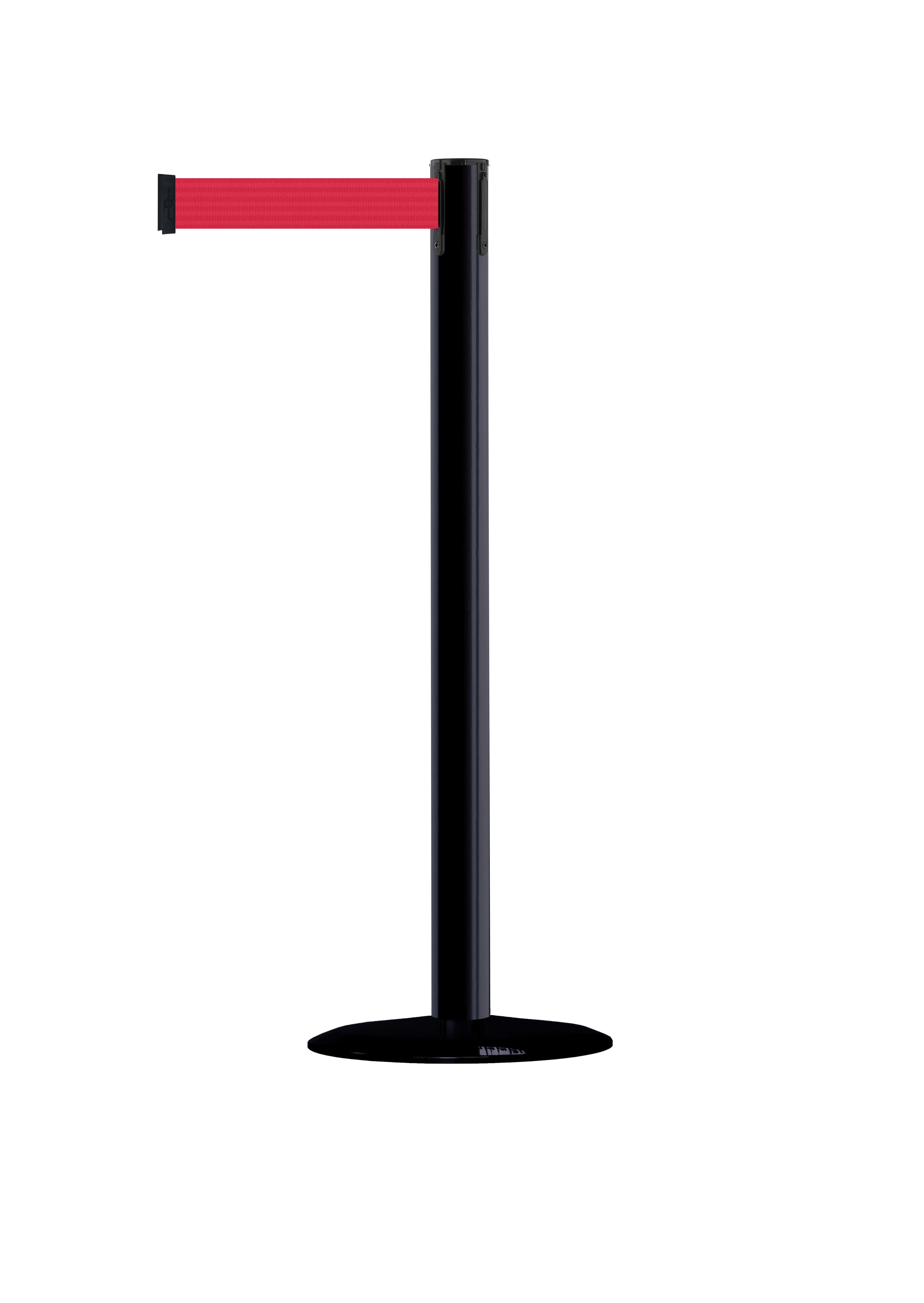 TE-889U-BKRD | Mobilní zahrazovací sloupek Advance s podstavou Universal, černý – červené pásmo 2,3 m |