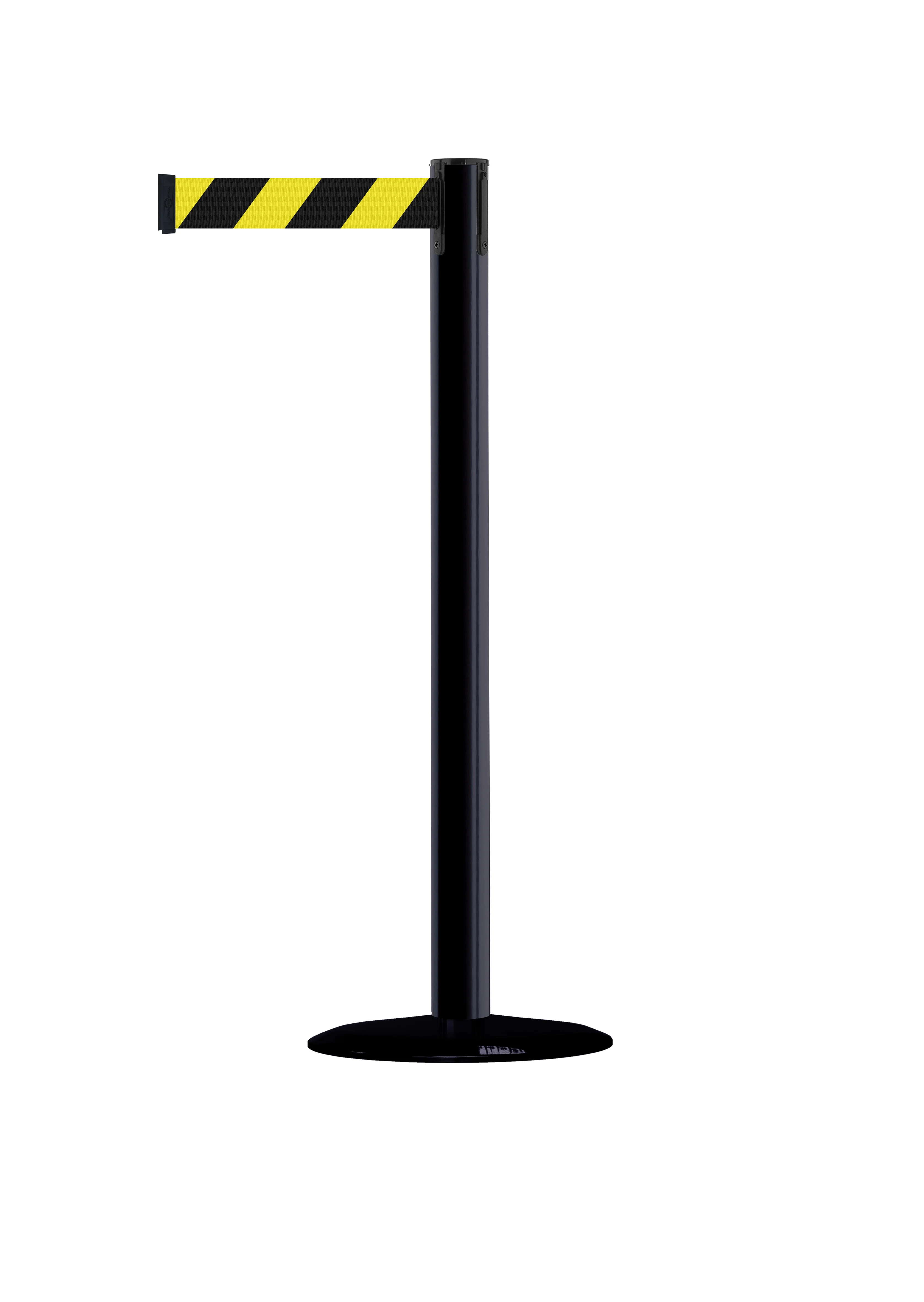 TE-889U-BKBK | Mobilní zahrazovací sloupek Advance s podstavou Universal, černý – černé pásmo 2,3 m |