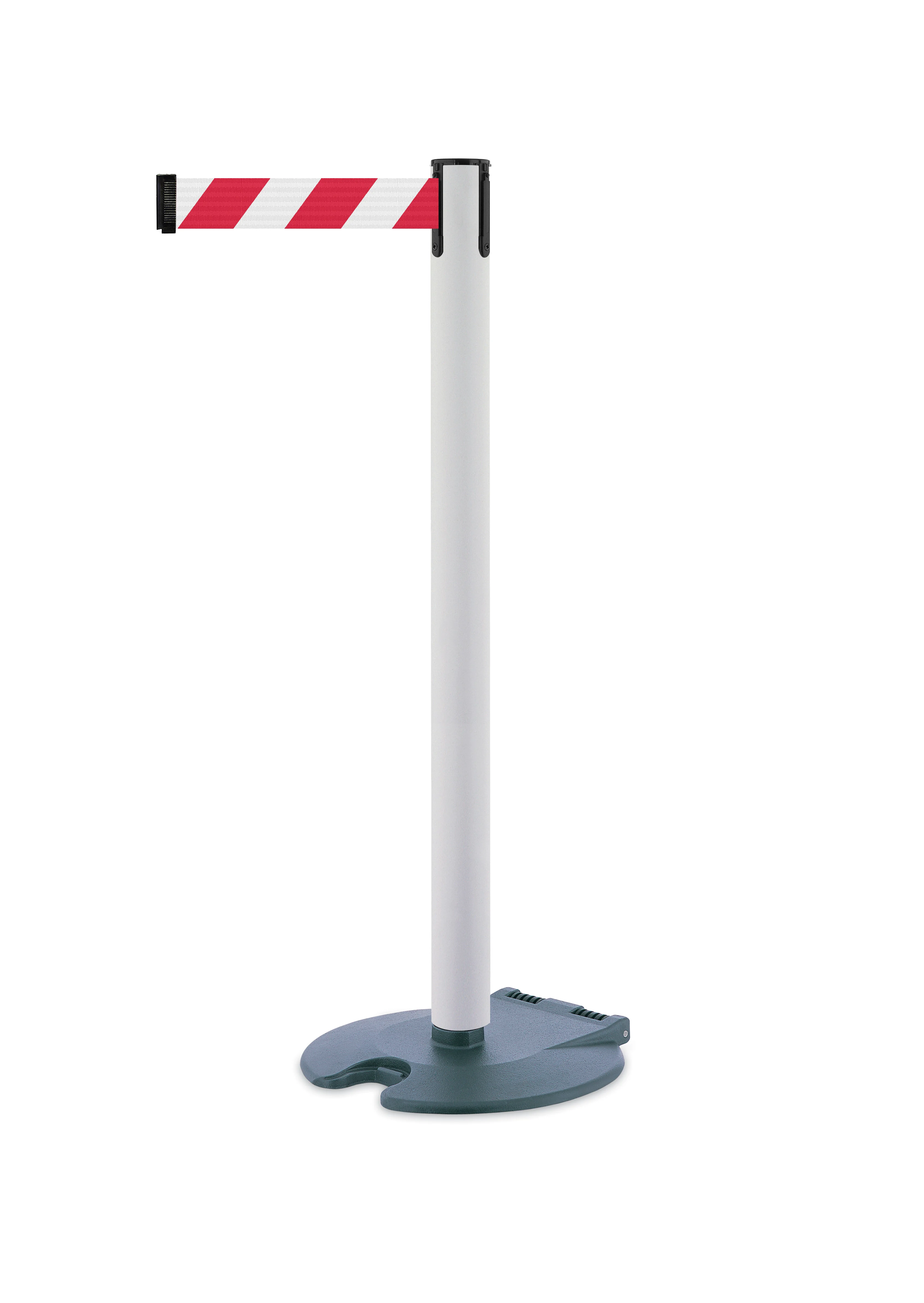 TE-RB1-MWEDGY | Mobilní zahrazovací sloupek Rollabarrier, bílý – tmavě šedé pásmo 3,65 m |