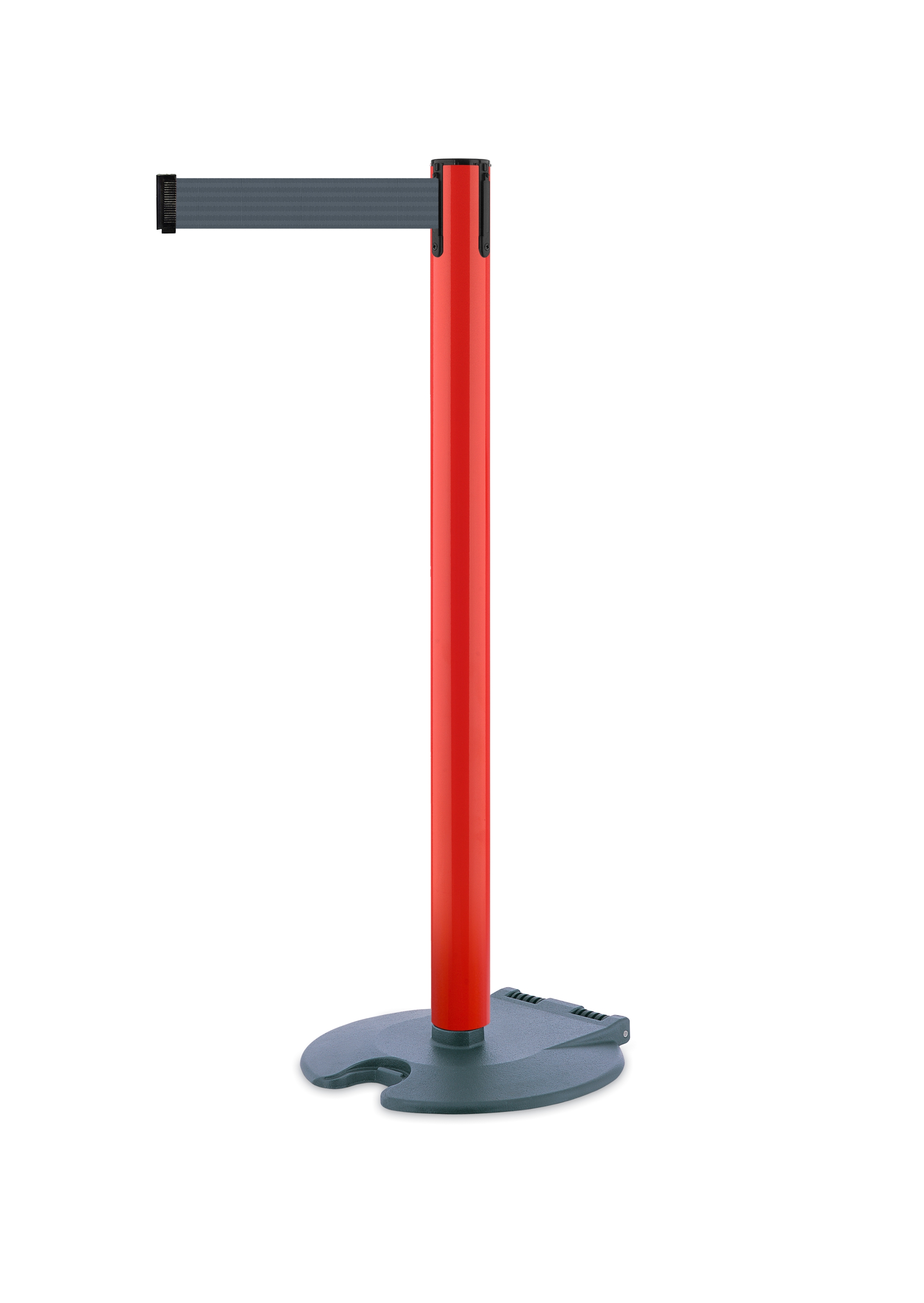 TE-RB1-MWEDGY | Mobilní zahrazovací sloupek Rollabarrier, bílý – tmavě šedé pásmo 3,65 m |