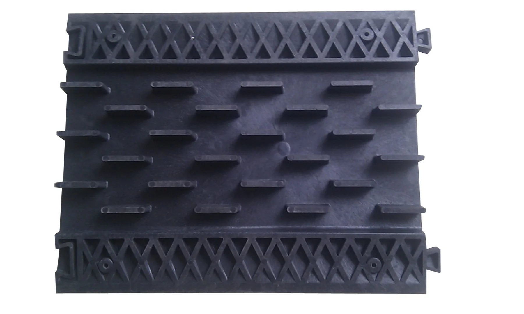 Je vyrobena z polotvrdé pryže. Každý prvek je vybaven čtyřmi otvory pro snadnou instalaci a dvěma reflexními pruhy tř.1 pro zvýšenou viditelnost. Uprostřed přejezdu se nachází sedm drážek pro průtah kabelů – max. 2× Ø 20 mm a max. 5× Ø 25 mm.