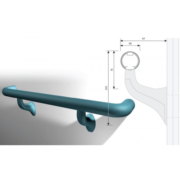 Nástěnné madlo Handrail 940 – PVC, barva standard dle vzorníku, 40 mm × 3,66 m, včetně 7 nástěnných konzol