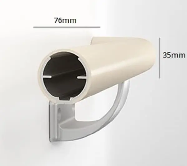Nástěnné madlo Handrail 1000 – PVC, barva standard dle vzorníku, 110 mm × 3,66 m, včetně 7 nástěnných konzol