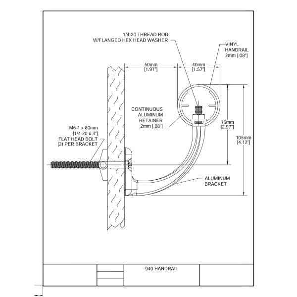 Nástěnné madlo Handrail 920 – PVC, barva standard dle vzorníku, 38 mm × 3,66 m, včetně 7 nástěnných konzol