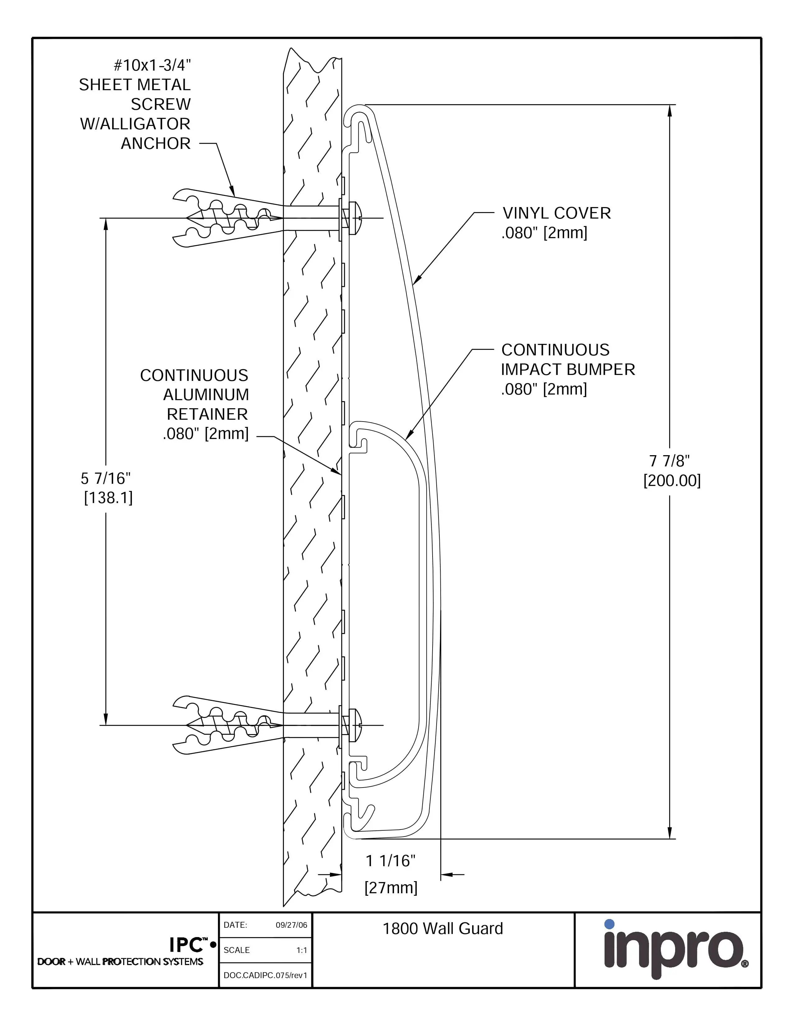 Nástěnný nárazník Wall Guard 1800 z materiálu PVC-u poskytuje nepřetržitou ochranu stěn a zdí a zajišťuje lepší odolnost proti nárazu invalidních vozíků, nemocničních lůžek nebo nákupních vozíků.