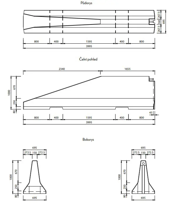 CB-300054_2 | Oboustranné silniční betonové svodidlo TYP100 – levý krajní díl, 4000×695×1000 mm |
