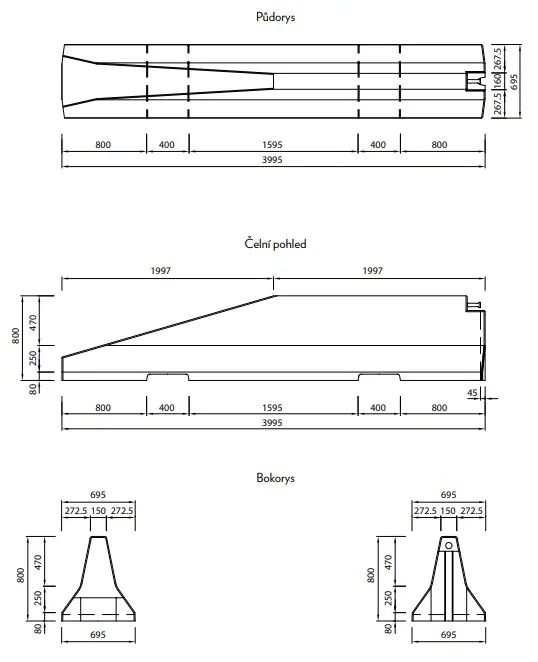 CB-300054_1OB80 | Oboustranné silniční betonové svodidlo TYP80 – pravý krajní díl, 4000×695×800 mm |