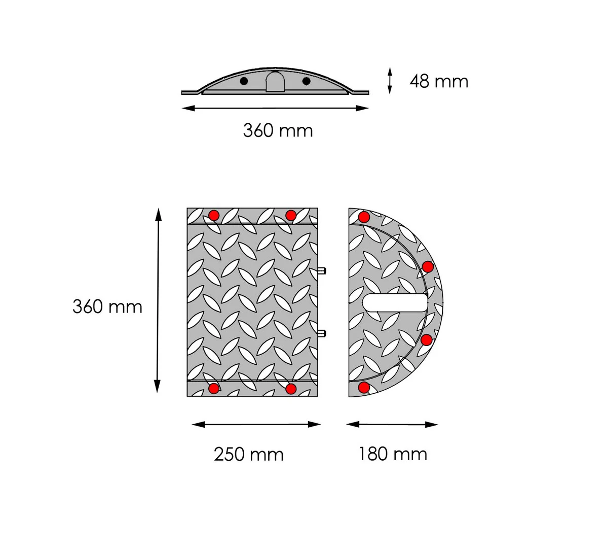 Ocelový retardér a kabelový přejezd v jednom – ochrání kabely, hadice a zároveň sníží rychlost projíždějících vozidel. Retardéry musí být nainstalovány pouze na soukromých cestách – průmyslové areály, čerpací stanice, nemocnice, parkoviště. Určeno pro přejezd těžké techniky.