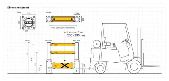Bezpečnostní zábrany zn. A-SAFE jsou vyrobeny z kvalitního polymerního materiálu s využitím uvnitř i venku. Tvarovaná paměť umožňuje vrátit se po nárazu do původního tvaru. Zapomeňte na opravy a nátěry, jak je znáte z kovových zábran. Bezpečnostní zábrany A-SAFE bezkonkurenčně snižují náklady na údržbu v porovnání s běžnými kovovými zábranami.