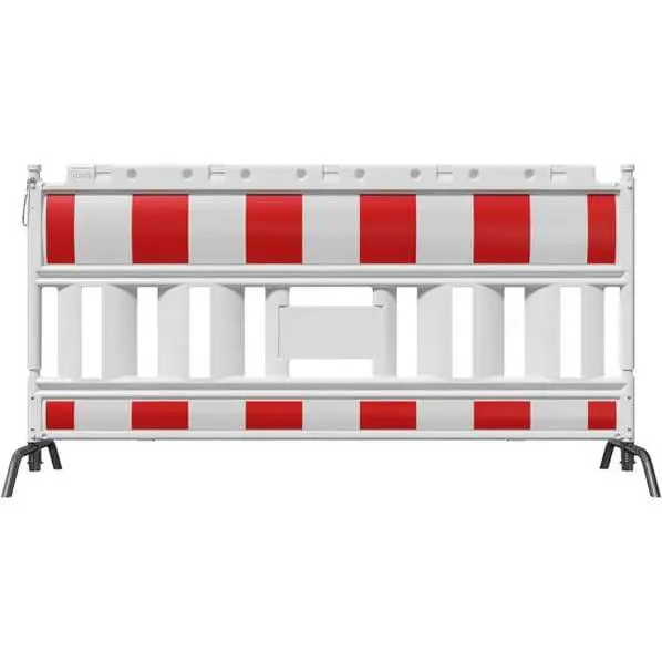 Silniční plastová zábrana Basic Steel EURO2 s retroreflexní fólií RA1 v červeno–bílém provedení je flexibilní a velice stabilní díky ocelovým otočným nohám. Je vyrobena z nárazuvzdorného plastu odolného proti UV záření a je předurčena pro využití v průmyslové výrobě a skladech.