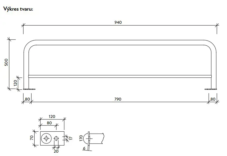 Zábradlí je určeno pro průběžné díly svodidel typu 50 HS01CSB s výškou 500 mm.