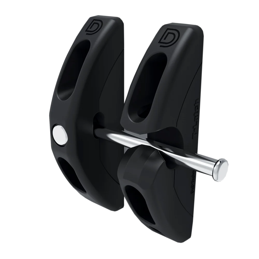 T-Latch® je uzamykatelná přepínací západka navržená pro zamezení prohýbání bran, například těch zahradních nebo bezpečnostních. Chrání proti nechtěnému vstupu a zajišťuje spolehlivé zavření brány. Je vhodná pro kovové, dřevěné a vinylové brány s mezerou mezi bránou a sloupky v rozmezí 10–44 mm.