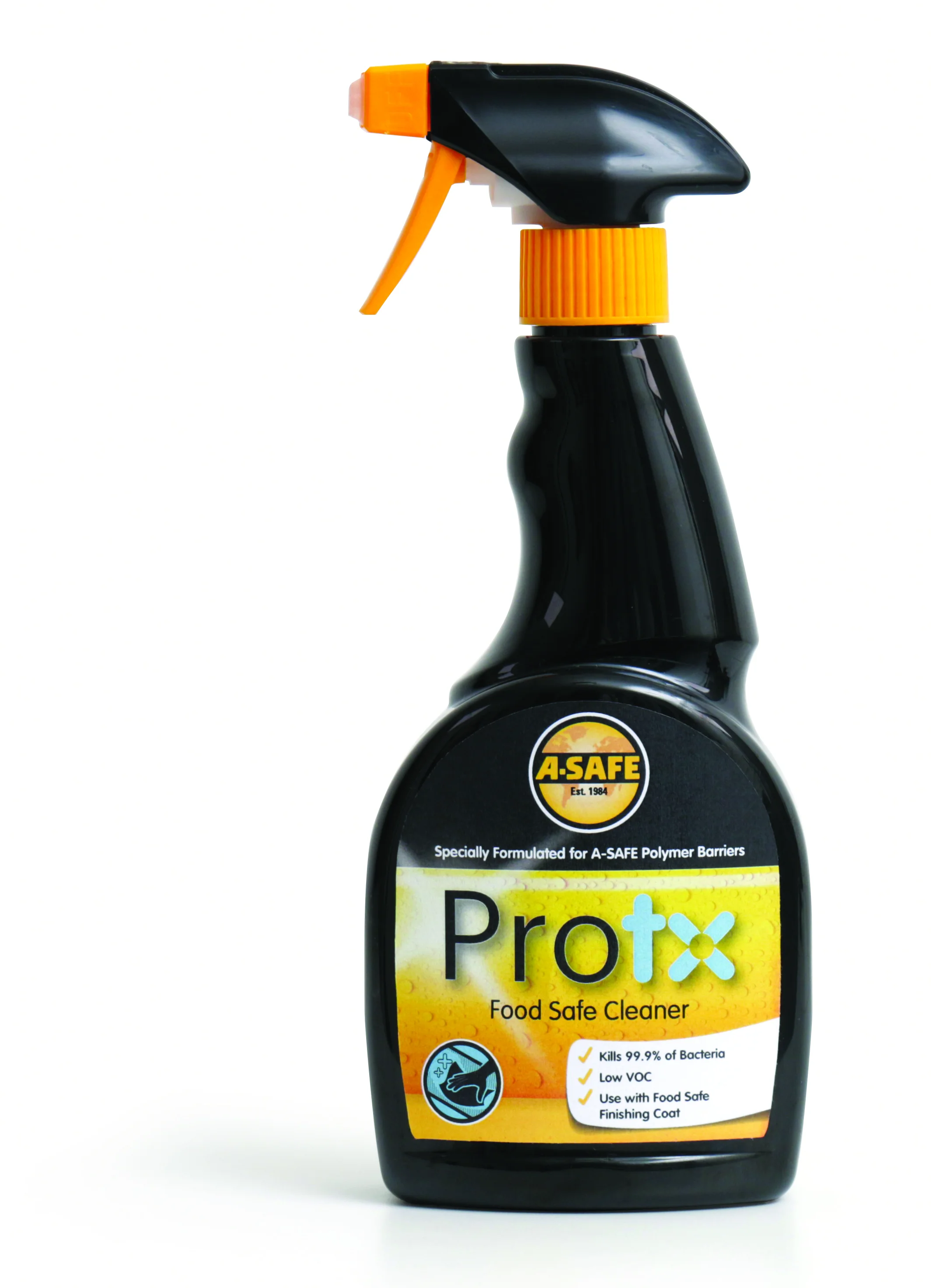 Protx Food Safe Cleaning Spray je prémiový čisticí prostředek pro potravinářské provozy a pro prostředí citlivé na kontaminaci. Tento čistič patří do řady produktů A-SAFE Clean and Protect Food Safe, která byla vyvinuta speciálně pro použití s patentovaným polymerem MEMAPLEX®. Jedná se o dvousložkový systém, který kombinuje maximální antibakteriální čistící účinek s vysoce výkonnou ochranou povrchu.