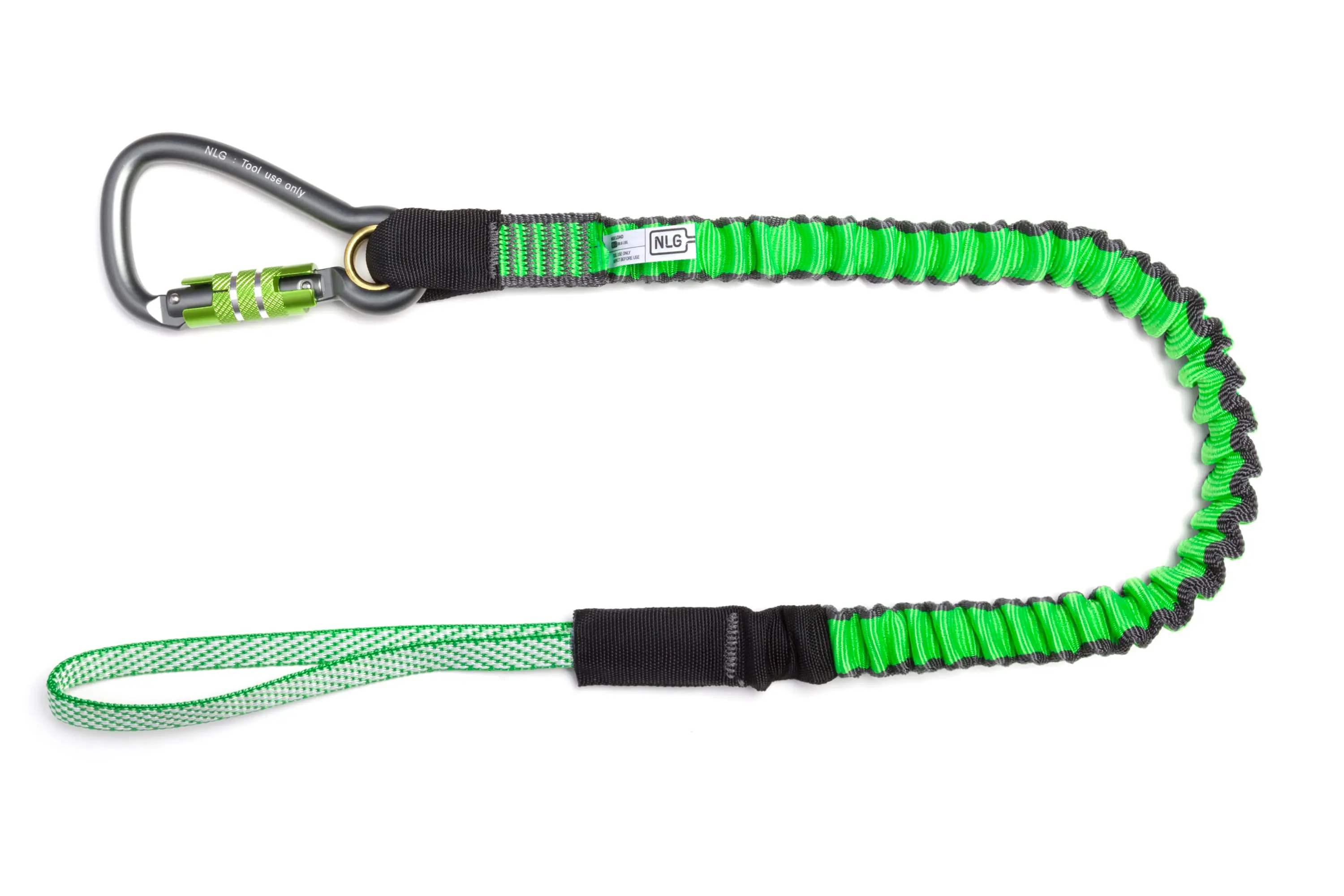 NG-101518 | Pružný závěsný popruh NLG Lanyard s jednou karabinou na nářadí – nylon, zeleno-černá |