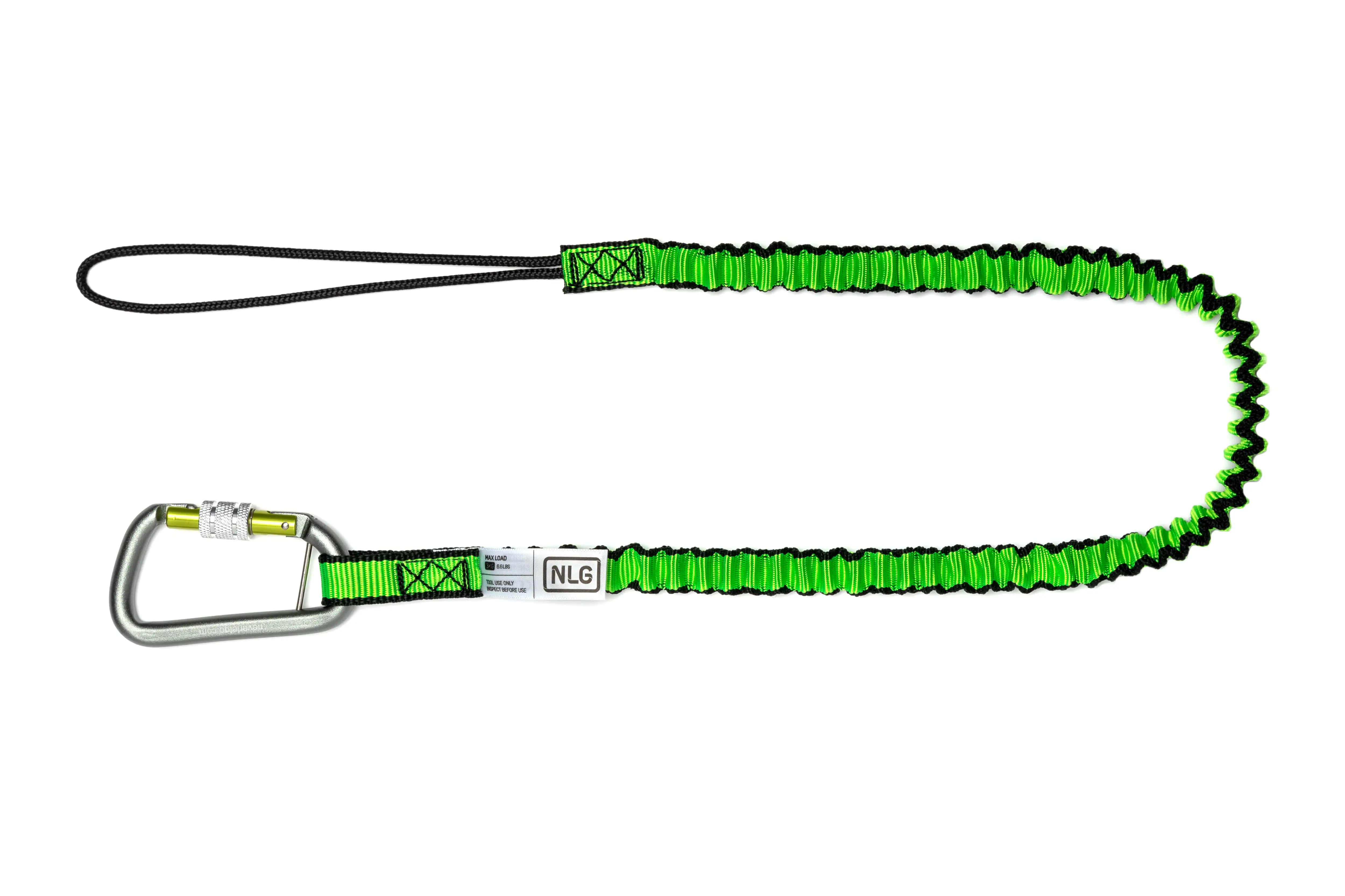 NG-101519 | Pružný závěsný popruh NLG Lanyard se dvěma karabinami na nářadí – nylon, zeleno-černá |