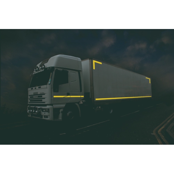 Reflexní obrysová samolepicí páska výrazně zlepšuje viditelnost na velké vzdálenosti a je určena pro značení nákladních automobilů, cisteren či plachet.