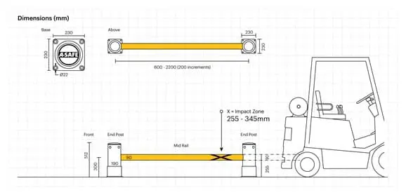 Nárůst délek po 10 cm dává možnost výběru délky zábrany s malým přesahem přes stojiny regálů. Dvojité otočné opláštění na sloupcích rozptyluje nárazové síly a chrání samotnou konstrukci sloupku před nárazy kovových palet a ostrých vidlic VZV. Dvojité otočné opláštění doporučujeme do omezených prostorů nebo provozů s vyšší frekvencí pohybu manipulační techniky. Zábranu regálovou koncovou doporučujeme kombinovat se zábranami typu ForkGuard pro zamezení nárazu vidlí VZV v nízkých výškách od podlahy.