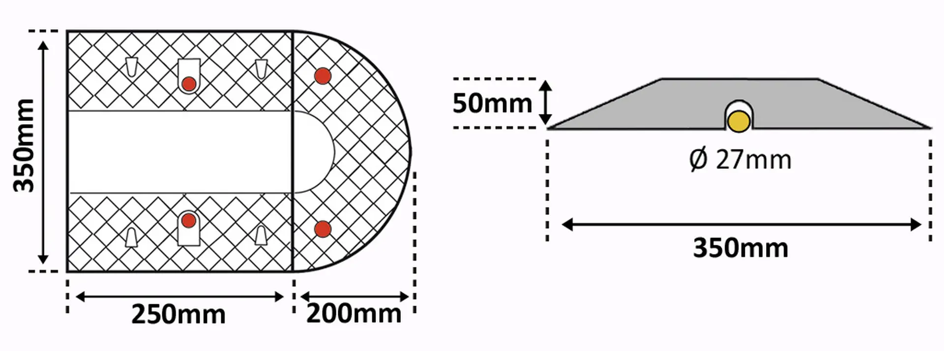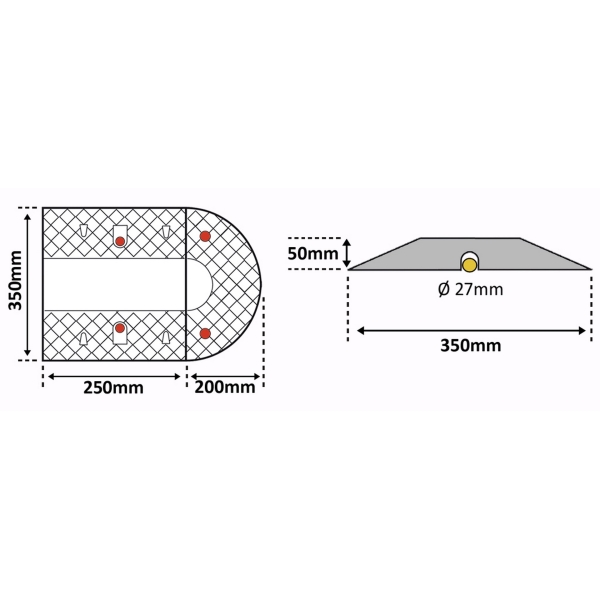 VI-SPEED50 | Retardér – kabelový přejezd 30 km/h, 20 t, sada 2 ks – 250×350×50 mm, černá | žlutá |