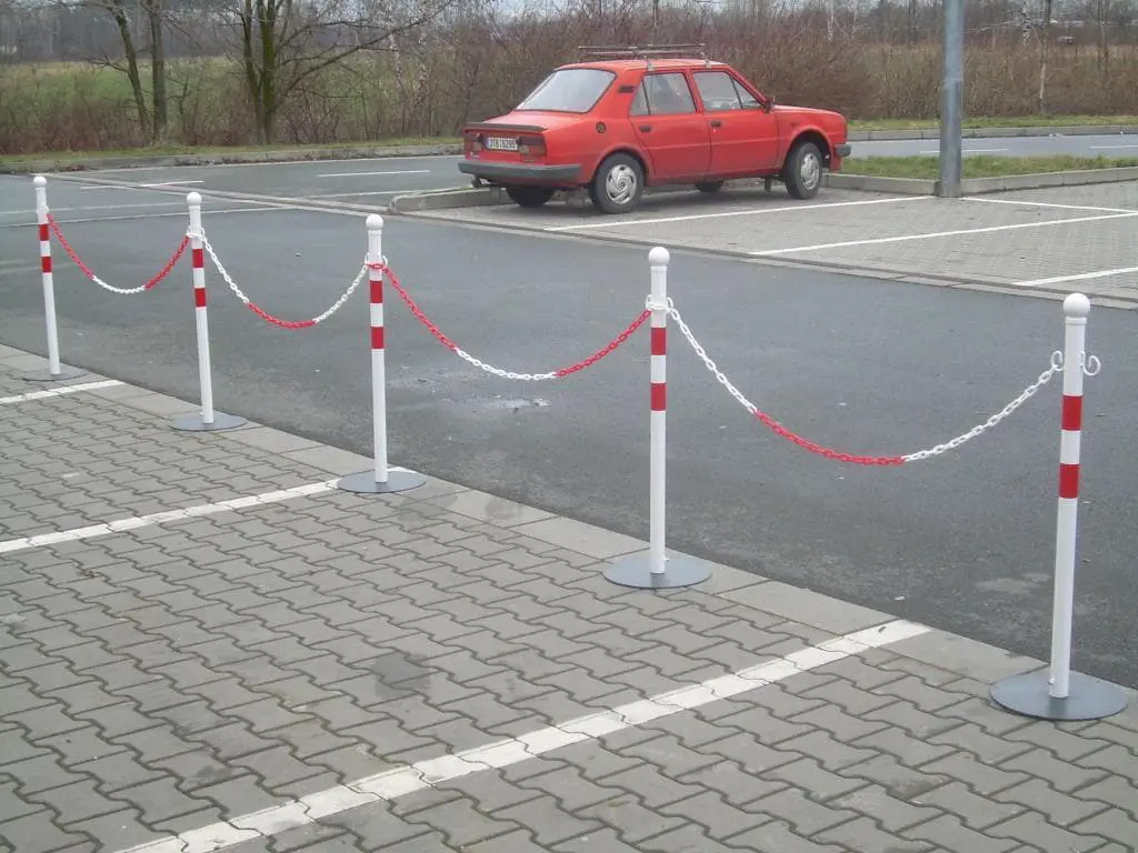 Řetěz je z plastu a slouží pro propojení jednotlivých mobilních sloupků.