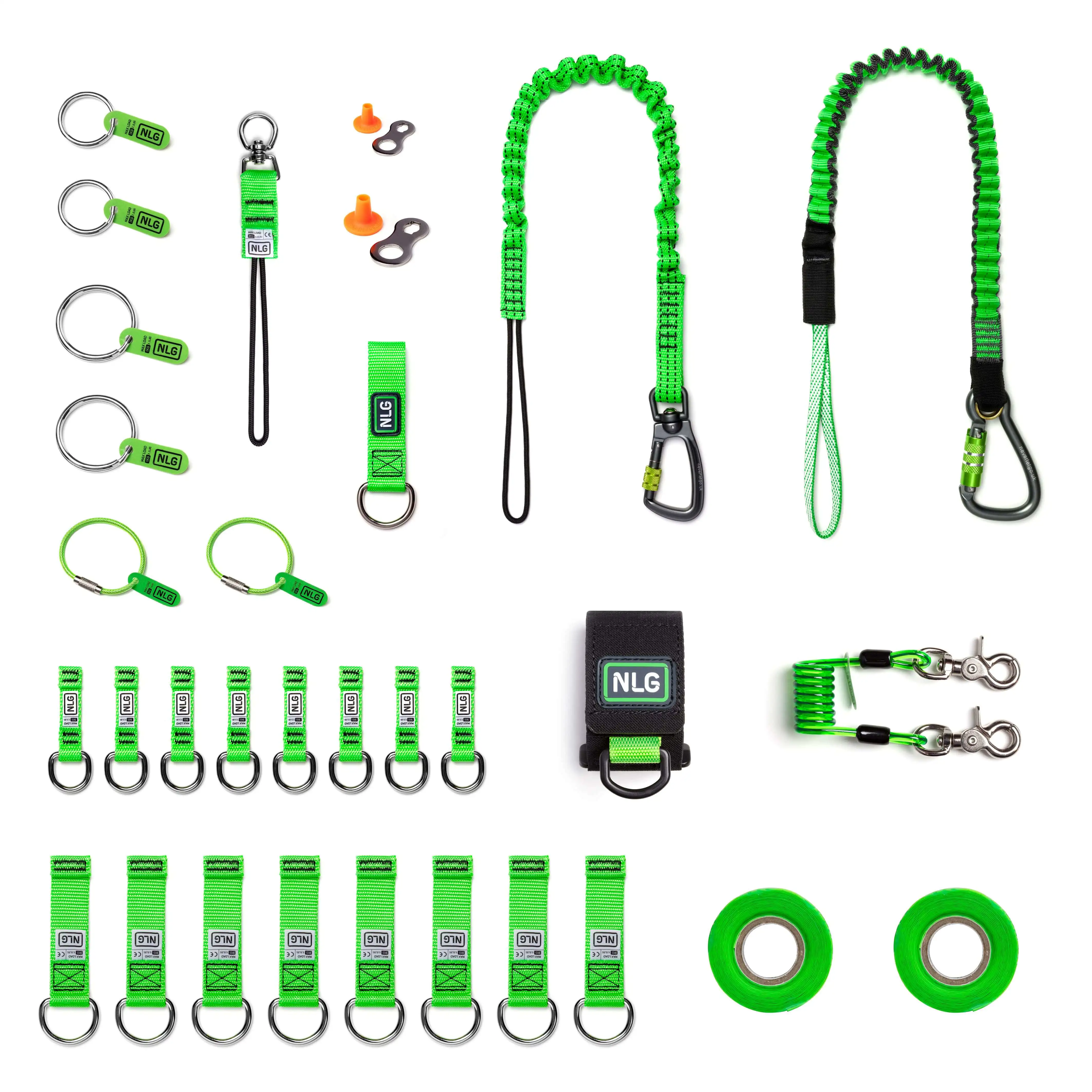 Závěsná sada NLG pro zajištění 25 ks nářadí je adaptabilní a komplexní řešení – obsahuje závěsné prostředky pro hmotnost až 18 kg, různé způsoby pro vytvoření závěsného bodu na široké škále nástrojů.