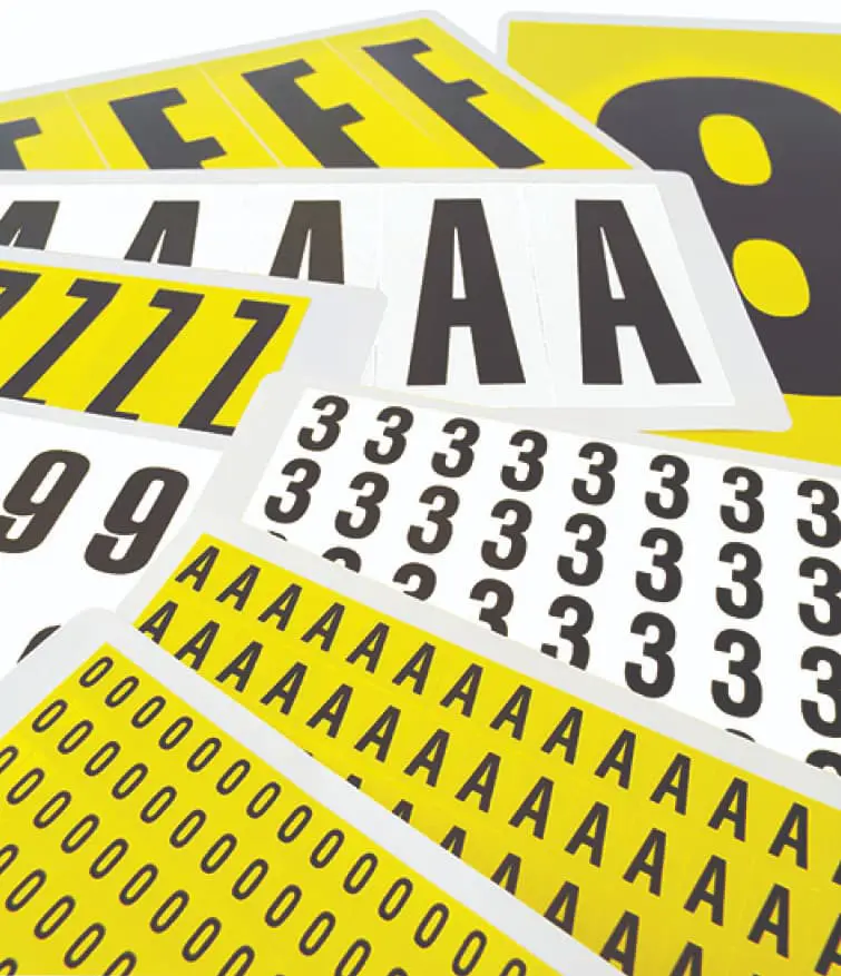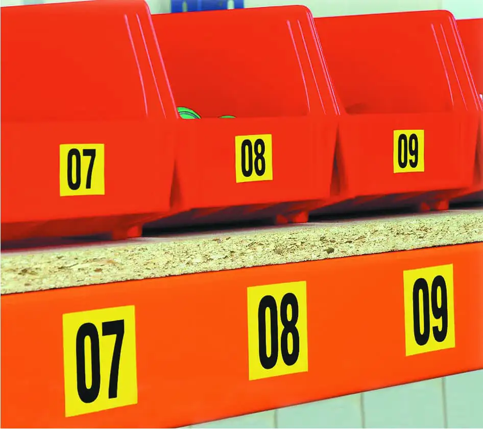 Samolepící písmena | znaky zamezují chybám, které mohou vzniknout špatným rukopisem a zároveň zaručují snadnou identifikaci ve skladech a výrobě – značení polic, regálů, košů.
